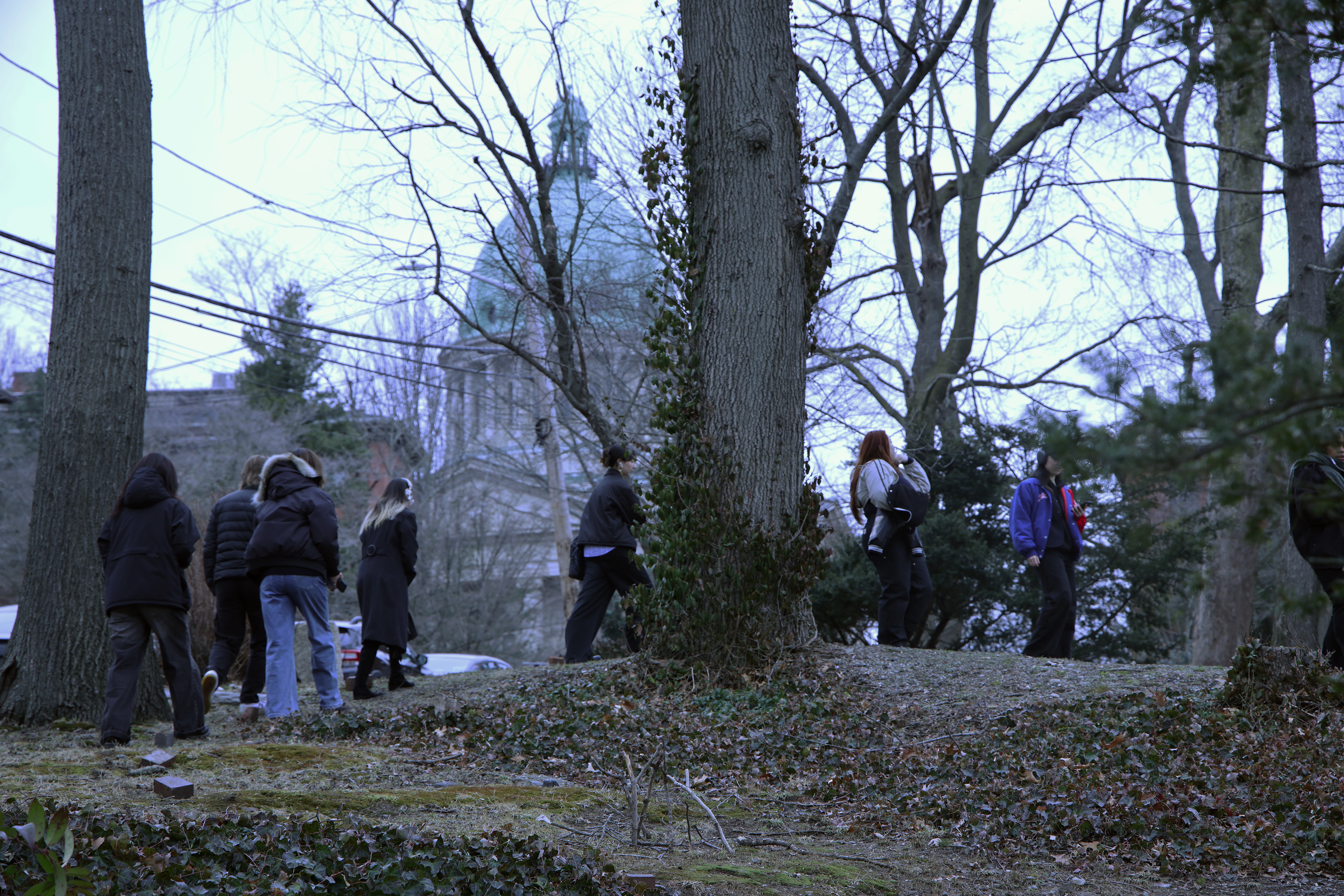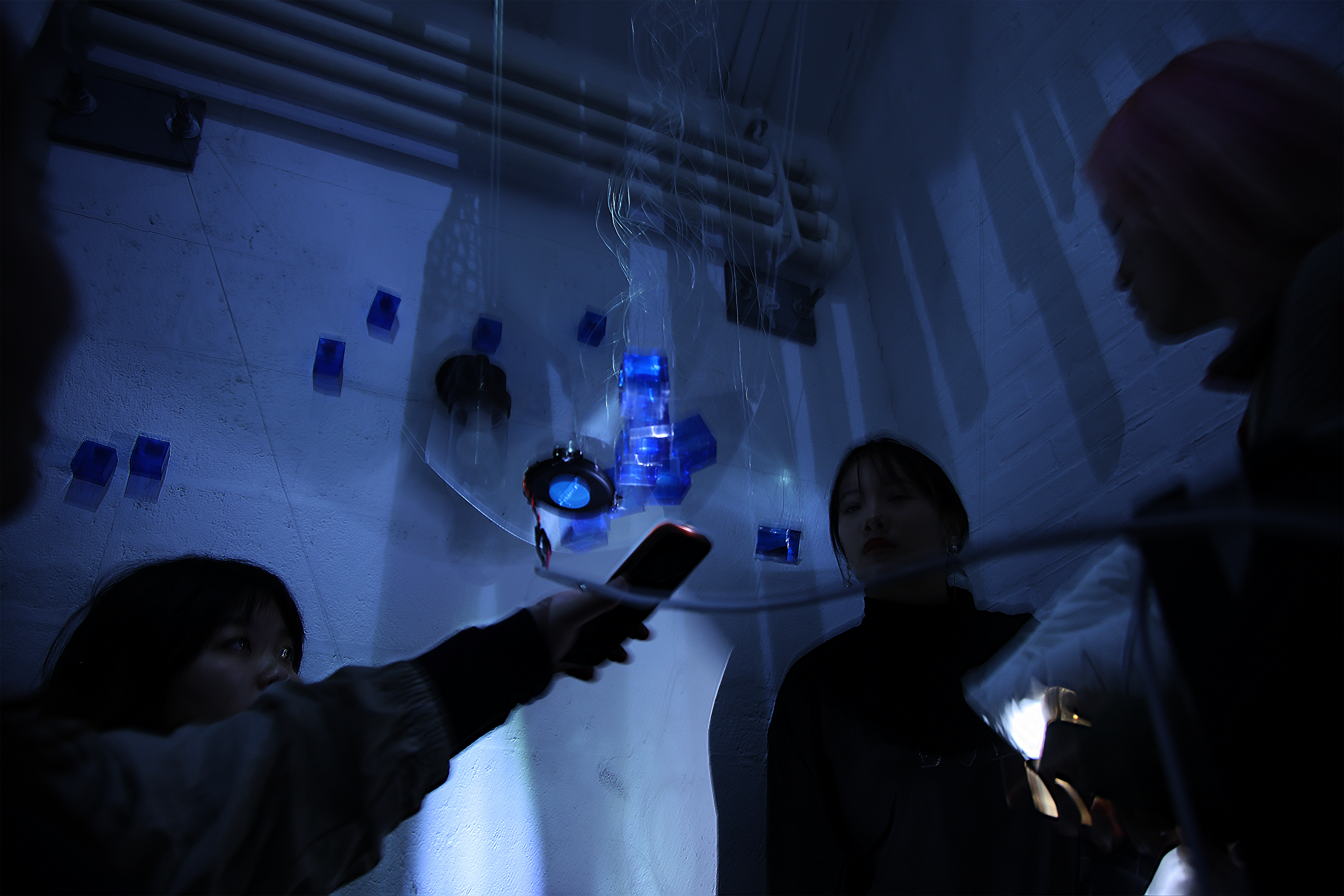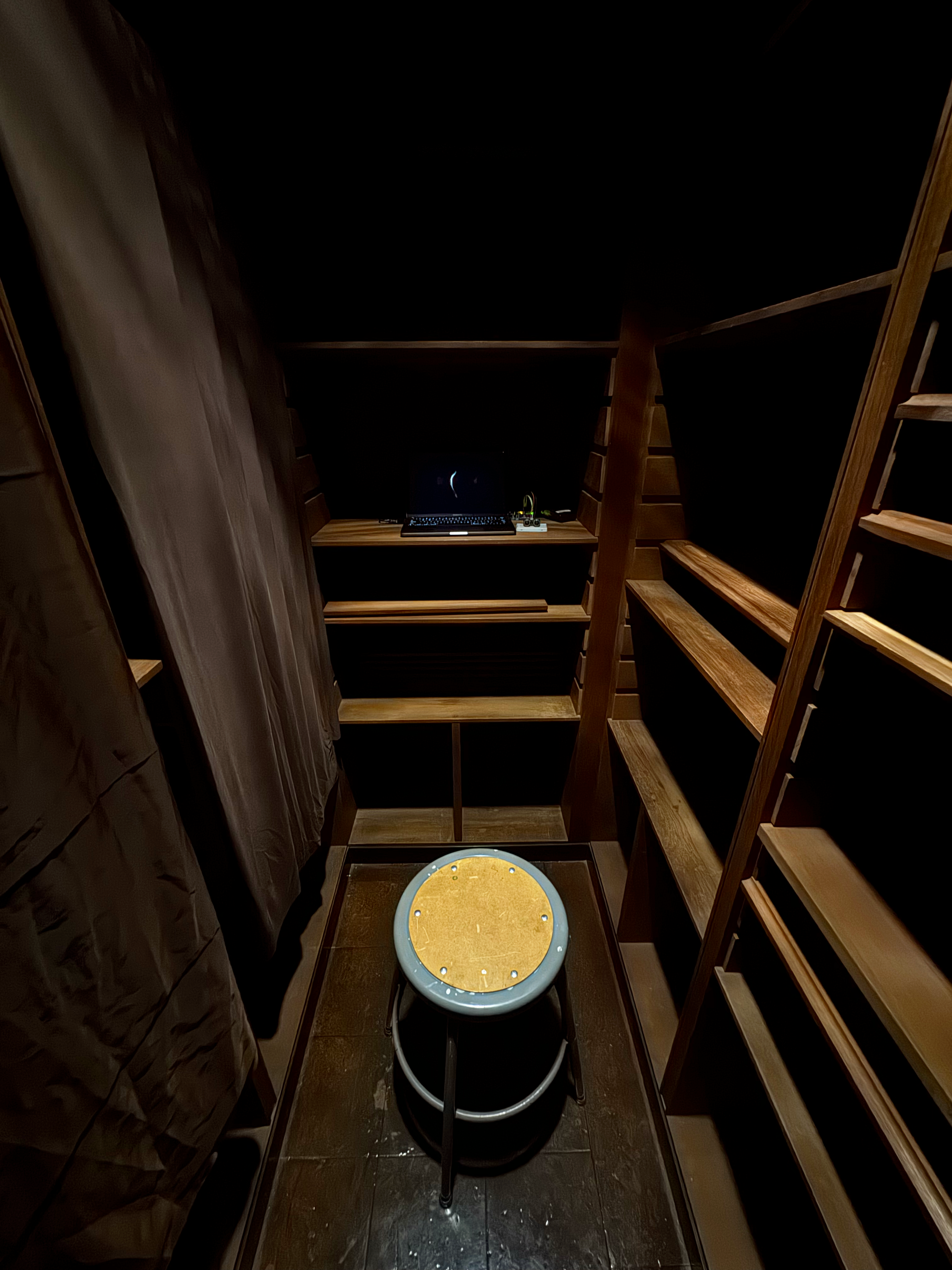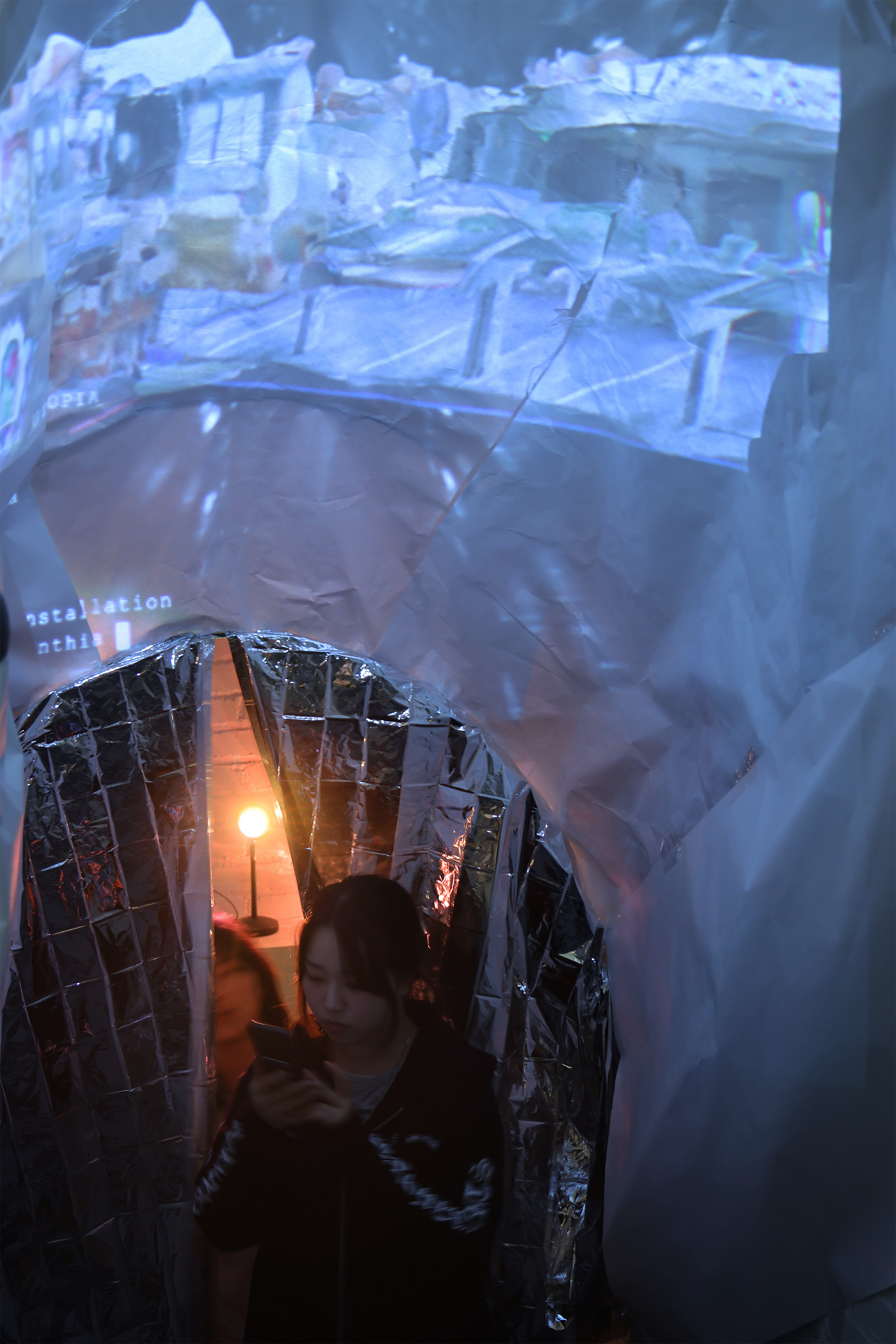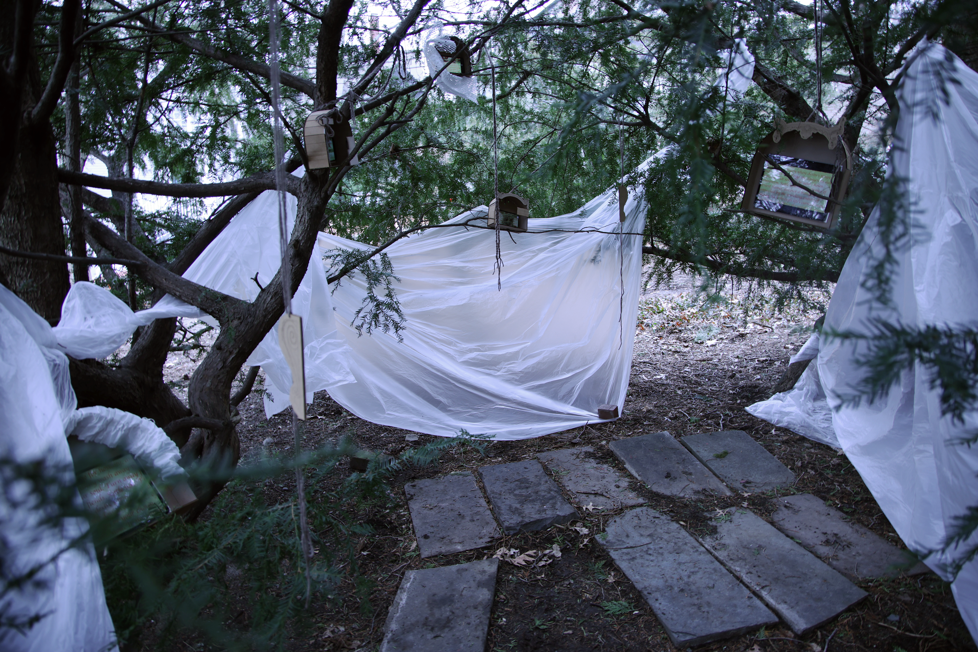 In a space separated from society by a myriad of trees, the viewer is guided by a soundwalk, placing them in the consciousness of someone leaving society, joining this utopia. They are led along a path through the woods to the installation space, which engages with all the viewer’s senses, making this process tangible. The viewer sits alone, strapped to another’s consciousness, lulled into a new way of being.